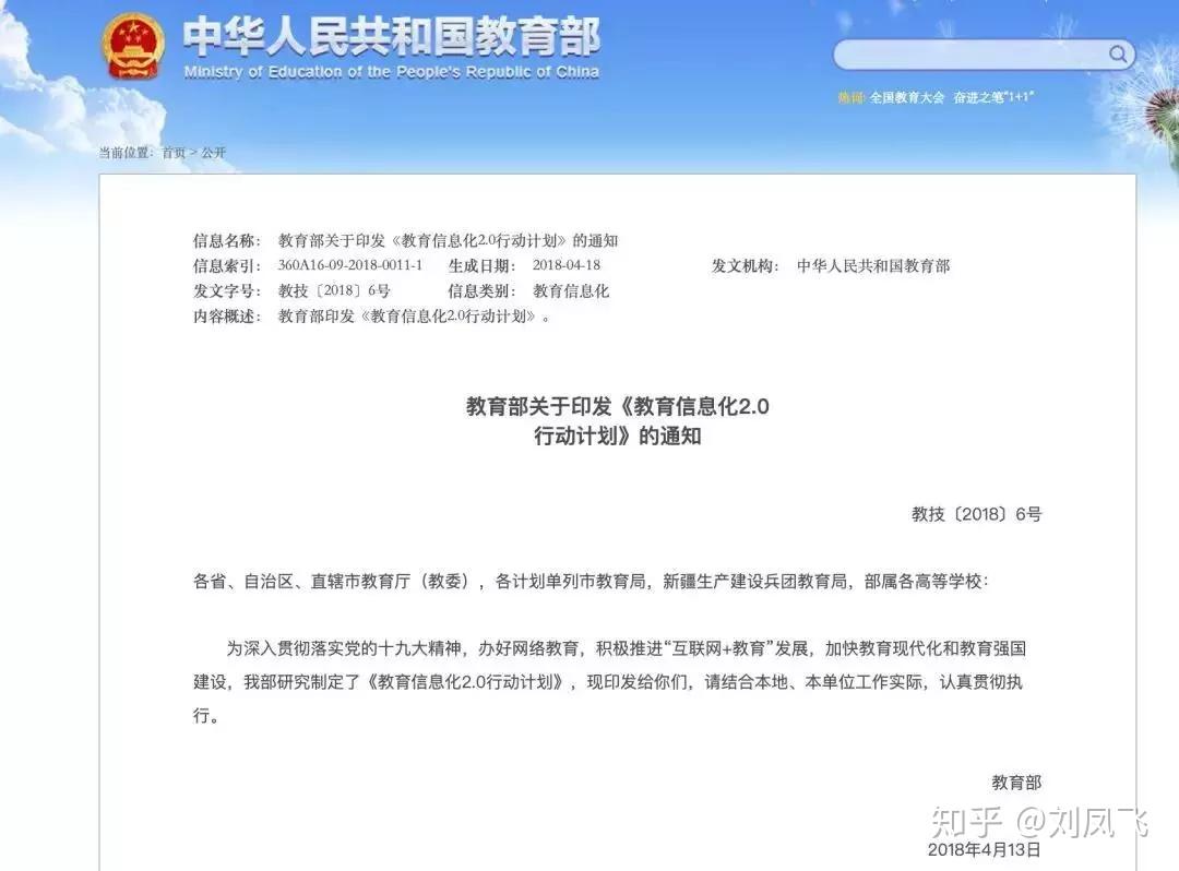 (4) 2018年4月13日,教育部印发《教育信息化2.0行动计划》。