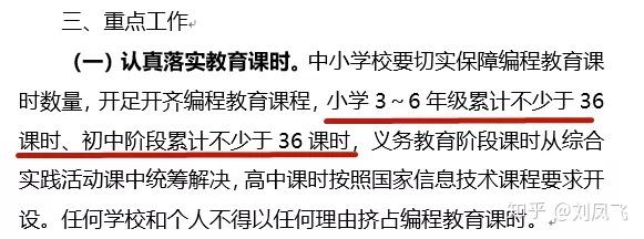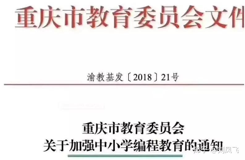 重庆公布的《关于加强中小学编程教育的通知》第一次从政策层面细化了少儿编程的课程安排。《通知》要求,小学3-6年级累计上课不少于36课时、初中阶段累计上课不少于36课时,同时要配备专门的编程教师。