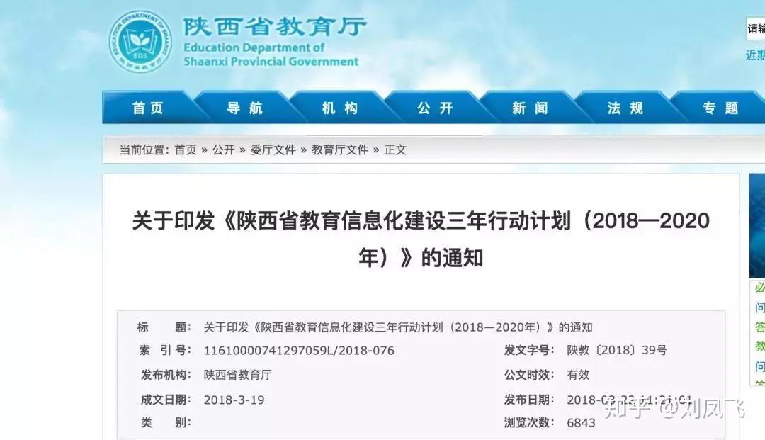 (6)2018年3月19日,陕西省教育厅印发《陕西省教育信息化建设三年行动计划(2018—2020年)》,强调要开展信息技术条件下的基础教育教学创新,深化教育改革。