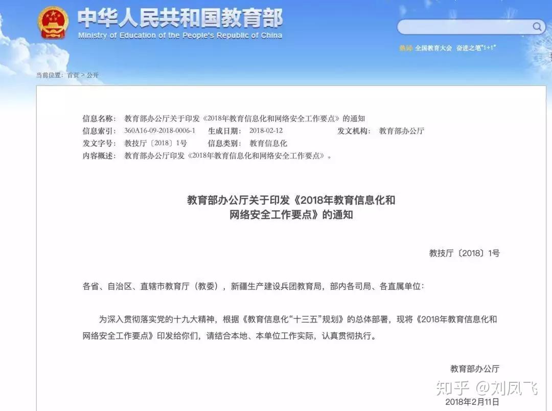 (3) 2018年2月11日,教育部印发《2018年教育信息化和网络安全工作要点》。