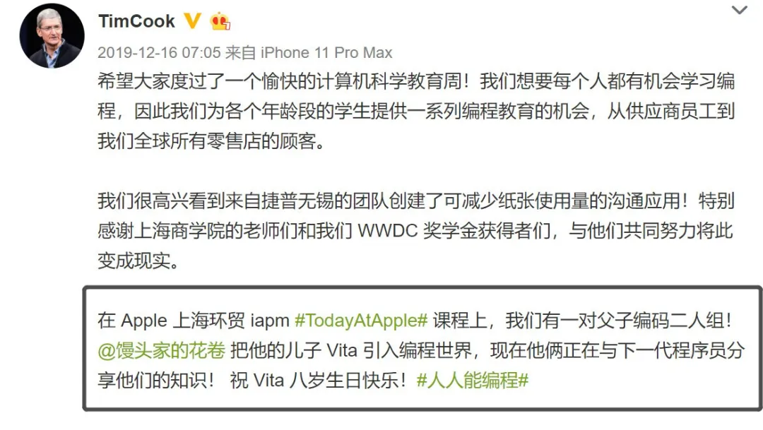 图片来源:B站up主@小学生Vita君他过生日的时候,苹果CEO库克也为他庆生。