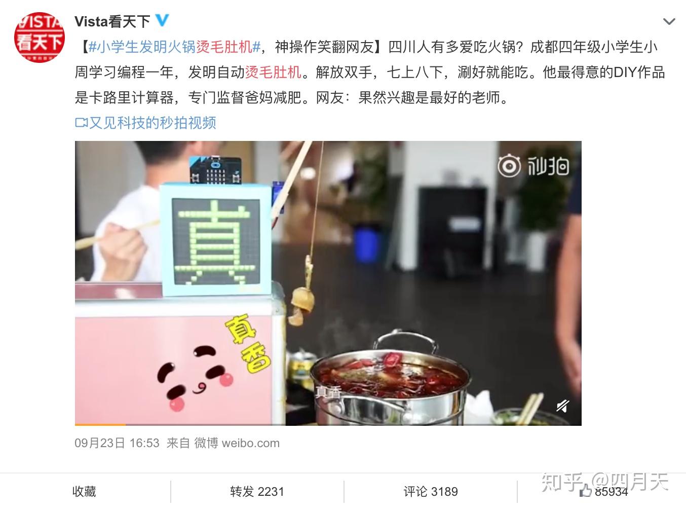 无人机硬件拓展课前阵子微博热搜的#小学生发明火锅烫毛肚机#,就是西瓜创客的学员作品: