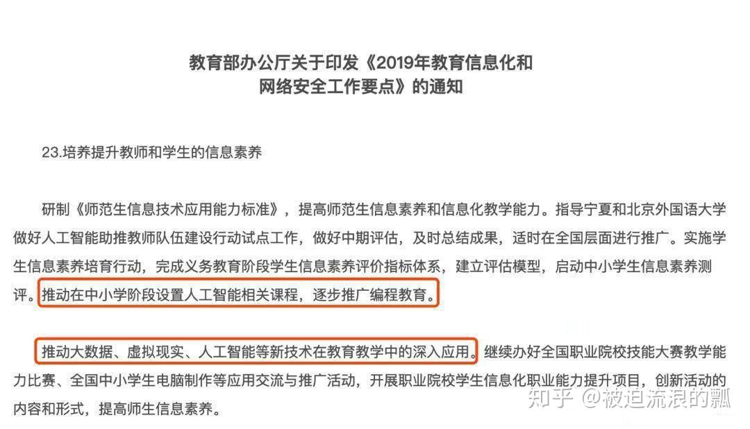 对编程的重视体现在教育上,2019年教育部对此颁布了重要资讯