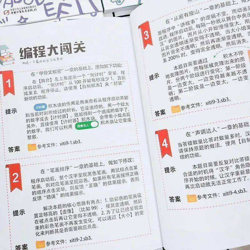 书中涉及到的编程知识点、操作指令、任务...基本上都是从孩子的角度出发设计的,加入了超多动画效果,充满趣味性,孩子可以在短时间内上手。