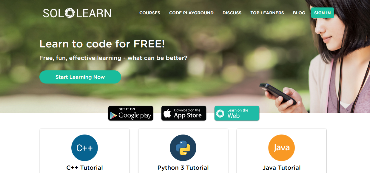 SoloLearn:免费手机学习服务与APP,同时支持10几种编程语言,可以在线运行代码。
