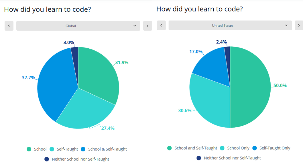 12月12日, HackerRank发布2018年度报告。他们发现全世界1万名相关学生里面,接近三分之二都在自学编程。IT业发达的美国,更是有五分之四的学生靠自学掌握技术。