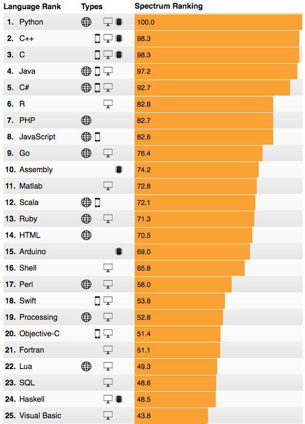 如果是初学者,笔者推荐学习Python、JavaScript这种非常主流,同时也相对简单的语言。因为相关中文资料少、不推荐从LISP这种冷门语言起步。