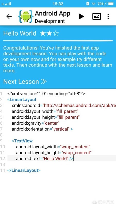 3.这里也可以编写一些简单的安卓程序,效果如下,而且官方自带有教学入门实例,非常适合初学者学习和掌握: