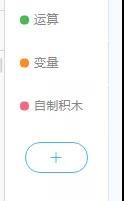 1、打开慧编程创作界面,在页面中间区域的“积木组分类名称”的最下面点击“+”。