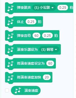 “弹奏音符”积木块的说明:包括2部分内容,即音符和节拍。