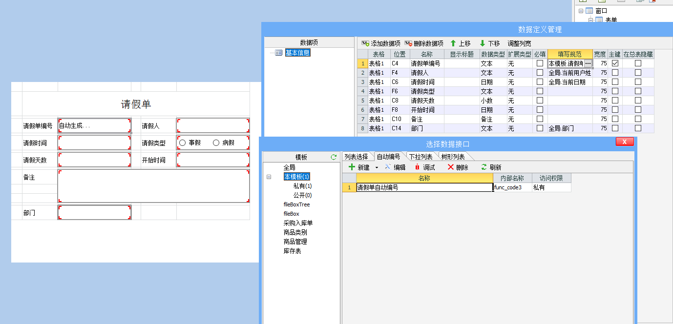 随后,用云表的填表公式、数据接口功能,让用户可以智能快速填表,比如说系统会自动帮你填写请假时间、请假单号自动生成等;