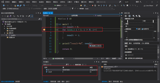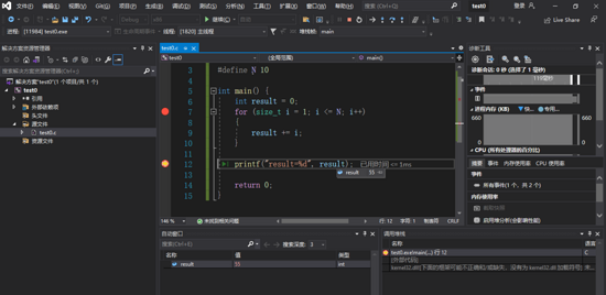 代码执行到断点处会停下,我们可以将鼠标放在某个变量上查看变量的值,也可以在下方的窗口查看所有变量的值。