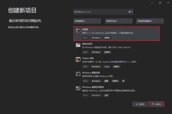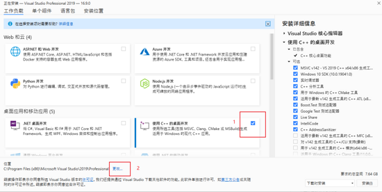 如果没有别的需求这里我们就只选择:使用C++的桌面开发