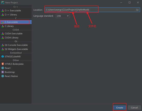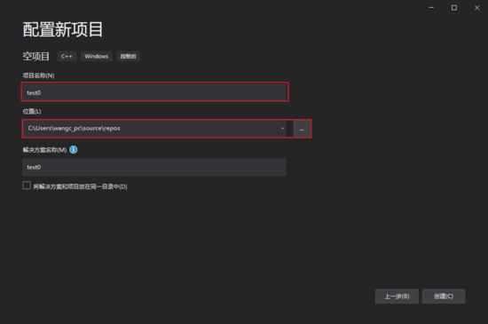 填写项目名称,和项目存放的位置,然后点击右下角的创建