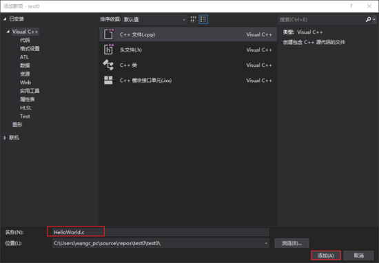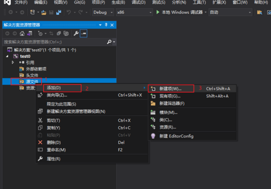 在源文件上右击添加-->新建项,也可以直接使用快捷键ctrl+shift+A