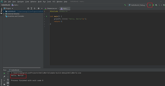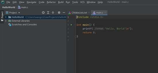 这里自动给我们创建了一个main.c文件,而且有一段示例代码。