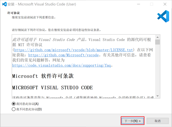 VScode 安装包下载后,直接双击如下,点击同意,然后点击下一步