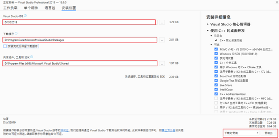 选择好安装路径后,在右下角安装按钮的左边选择下载时安装(默认就是,这样可以节省安装时间),然后点击安装