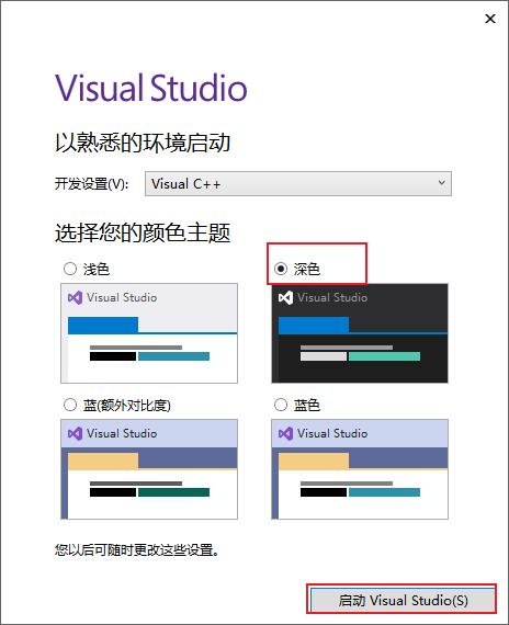 根据个人喜欢选择主题,冲哥酷爱深色:heart_eyes:,然后点击启动。