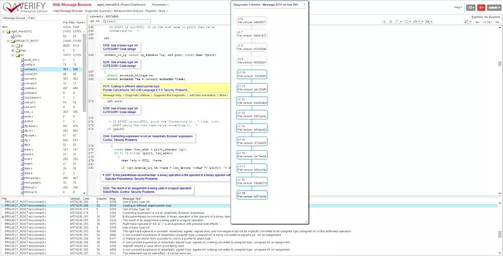 在新的代码和以前的代码中发现编码问题。比较其他静态代码分析器,Helix QAC发现更多的编程错误,包括C/C++的未定义或未指定的行为,且适用于数百万行的大型项目。