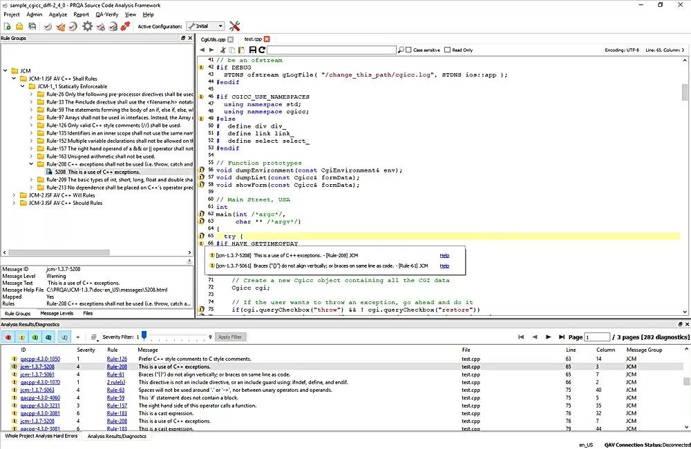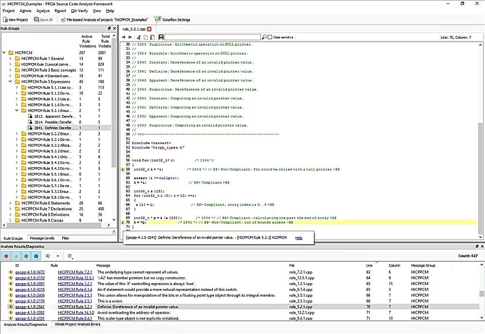 ② JSF AV C++用于安全关键的开发。Helix QAC提供了对该标准规则的理解最为深刻的诊断信息。