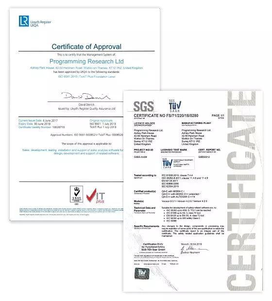 Helix QAC经过了独立的标准认证,Helix QAC是由Programming Research开发的,后者现在是Perforce的组成之一。