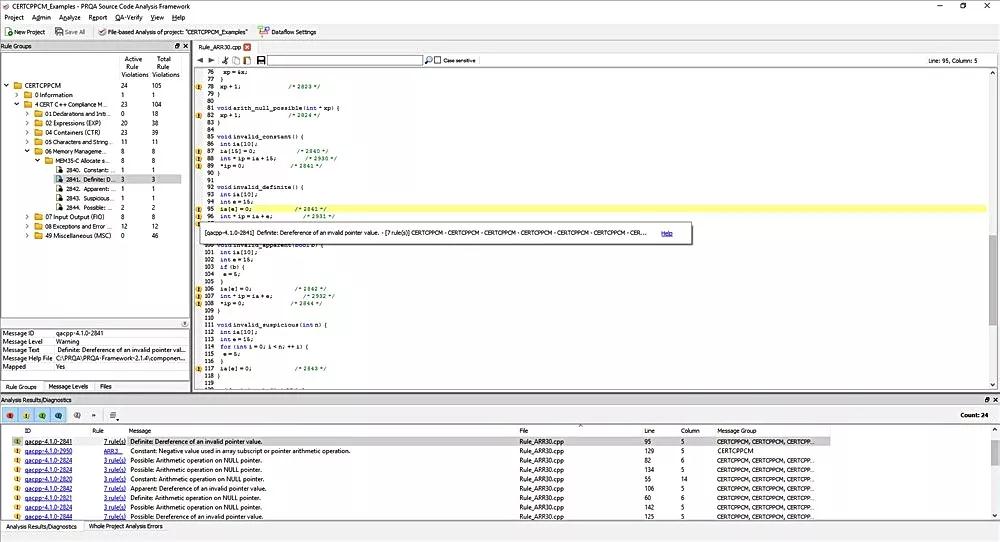 ③ CERT C和C++合规性模块指出违背这些规则的代码段,帮助你消除未定义的行为,应用安全编码的最佳实践