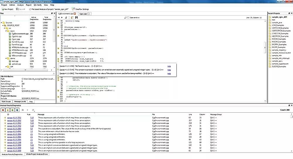 以风险的严重程度划分编码问题的优先级。Helix QAC使用过滤器、抑制和基线的手段帮助你关注最为关键的代码缺陷,提供精确的诊断和可操作的结果。用户因此能够首先修改最重要的问题。