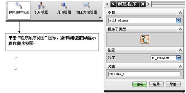 在“类型”下拉菜单中选择合适的模版类型,在“程序”下拉列表中,选择新建程序所附属的父程序组,在“名称”文本框中输入名称。单击“确定”按钮创建一个程序组。完成一个程序组创建后将可以在操作导航器中查看。