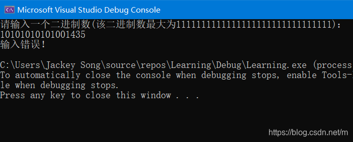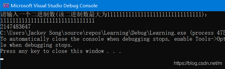 );//该段代码经过我精心调试过,输入的二进制数最大为十个1