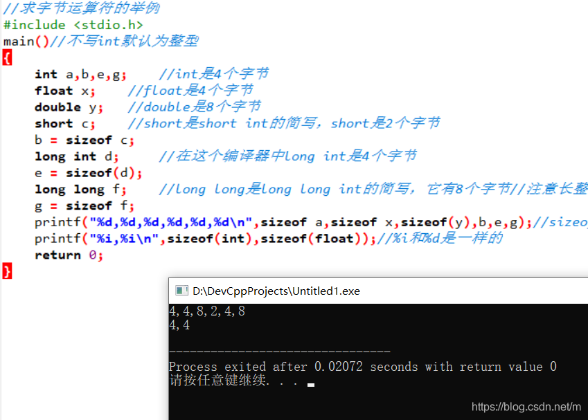 在第二行,我们加了一个int,这个是主函数的函数类型,函数类型与它的返回值有关,int是整型,当不写int时,默认为int整型。return 0;是函数返回值,因为它没有返回值,所以直接返回0,也可以省去,因为我们只是打印一句话。括号里面的是主函数的参数,因为这个主函数没有参数,所以我们用void(空),也可以直接省去。