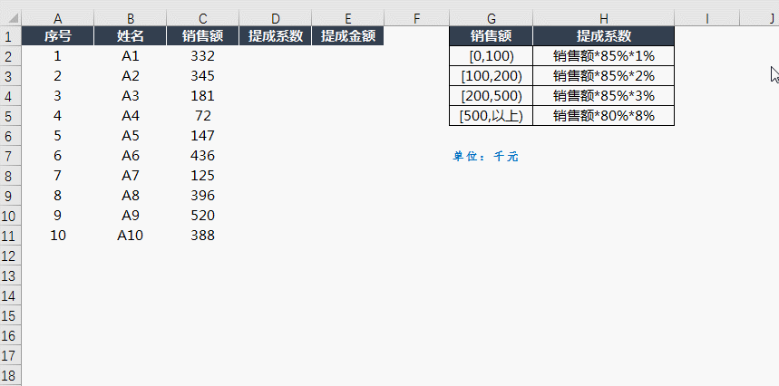 (示例3)需求,按照制度,制作每个人的提成。