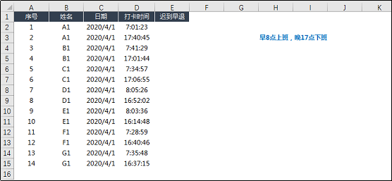 我们看一个案例说明问题,考勤统计: