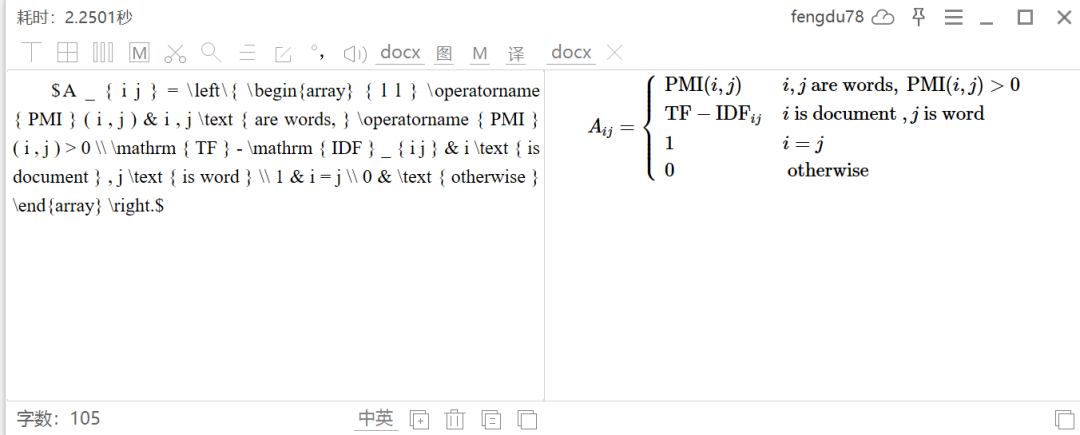 识别后的公式,可以导出tex或者保存为word文件