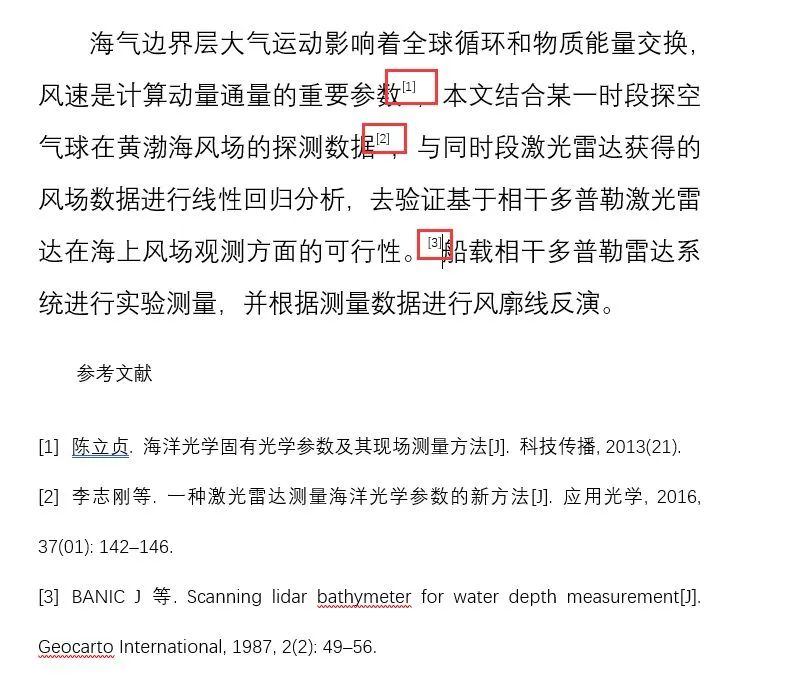 4. 下图1处出现上角标→光标置于参考文献3处→点击2处→3处引入参考文献成功