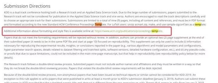 按照overleaf的开始流程,有选择模板的过程,模板怎么选,还是要看投稿的期刊或者会议的要求。以KDD为例,在它的KDD 2019 Call for Research Papers页面上,给出了模板格式,看看能不能在overleaf上找到,即使没有,一会提供下载,自己上传到overleaf。