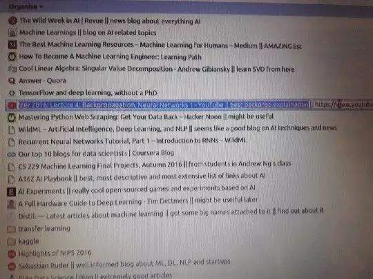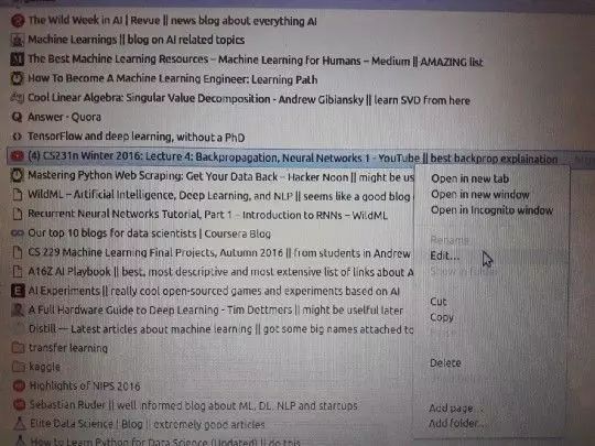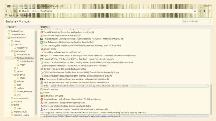 我收藏了每一个我害怕失去的好网页,并且根据它们所属的话题进行归入到文件夹,添加注释。因此,它们对我来说非常有价值。每当有人问我一些我所了解的话题,我都会尝试引导话题,以便我可以分享该话题的一些书签文件夹。