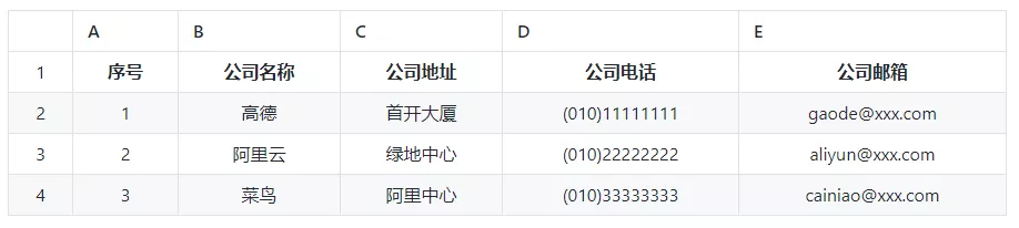 用 Excel 整理的公司列表如下,需要整理成 SQL 语句直接插入数据库: