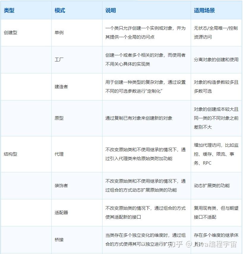 很多设计原则、设计思想、设计模式,都是以提高代码的扩展性为最终目的的。特别是 23 种经典设计模式,大部分都是为了解决代码的扩展性问题而总结出来的,都是以开闭原则为指导原则的。最常用来提高代码扩展性的方法有:多态、依赖注入、基于接口而非实现编程,以及大部分的设计模式(比如,装饰、策略、模板、职责链、状态)。