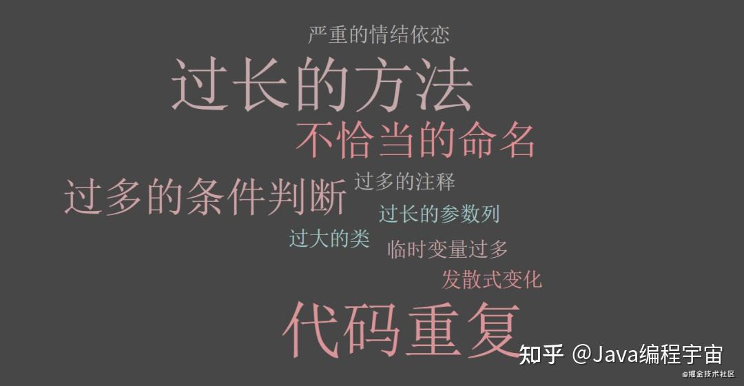 方法中的语句不在同一个抽象层级逻辑难以理解,需要大量的注释面向过程编程而非面向对象过大的类