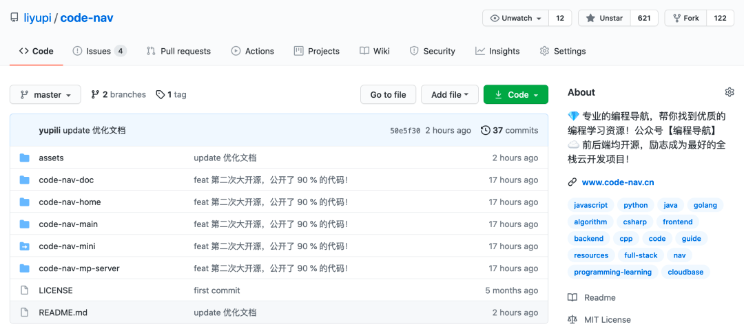 比如我的 编程导航 项目已经开源 4 个多月了,文档编写非常用心,也做过一点推广,才收获了 600+ star,确实是很不容易。