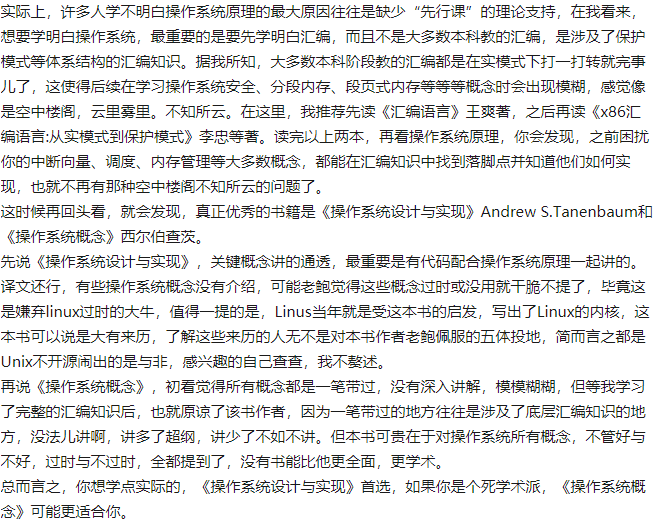 估计有很多人像我一样本科或者自学的时候学不懂操作系统吧,或者觉得OS学起来非常空中楼阁。那么如何把操作系统学明白呢?下面这段话是我见过的最好解答