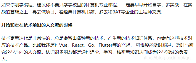C++初学者已经掌握一门编程语言&想提升编程能力的初学者想学习编程基础四大件(数据结构与算法、计算机网络、操作系统与计算机组成原理、设计模式)以及linux的科班生 C++语法学完之后,就应该学编程基础四大件和应用实践编程务必记住:编程基础4大件比编程语言本身要重要的多但是C++语法和编程基础四大件是知识性的东西,想转化为能力必须要经过应用实践编程(基于linux)至于为什么要学linux,因为企业级应用都是基于linux的啊,没有熟练掌握linux的还是初级程序员(个人浅见,因为我还没有工作,但是这些经验都是有工作经验的过来人说的)。还不明白linux/Unix重要性的可以自行Google百度