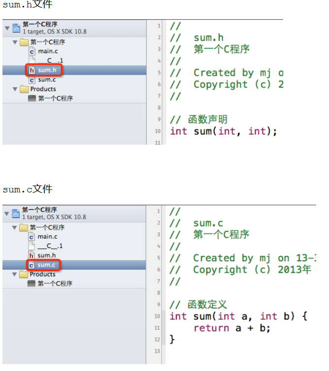 开发c程序一般会将函数声明放在.h头文件中,函数定义放在.c源文件中,然后在main.c中包含sum.h即可使用sum函数。这样设计是为了提高大型c程序的开发和调试效率。