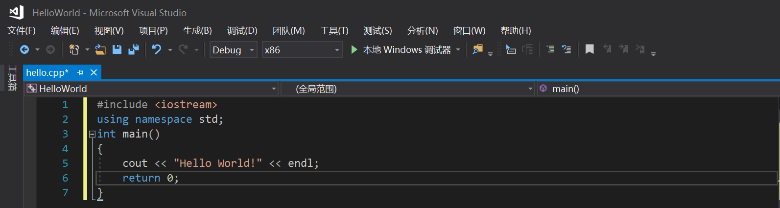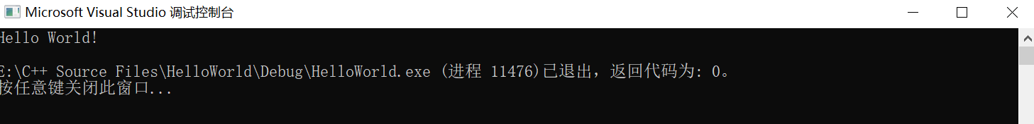 至此,完成了第一个C++程序,也对Visual Studio的使用有了初步的了解。