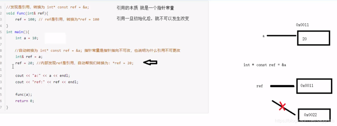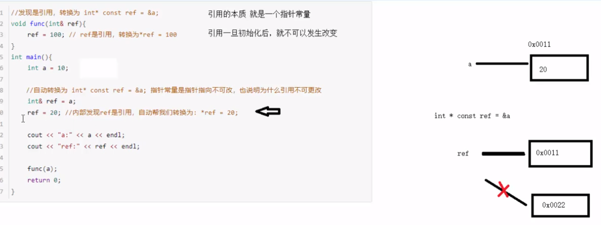 引用的本质在c++内部是一个指针常量