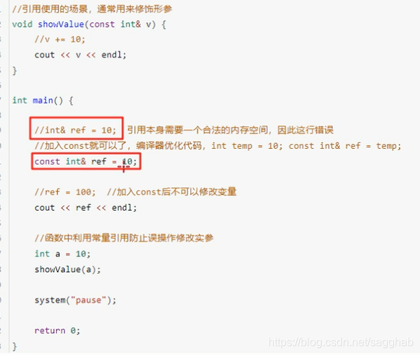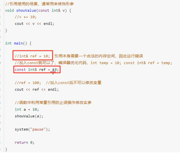 常量引用主要用来修饰形参,防止误操作