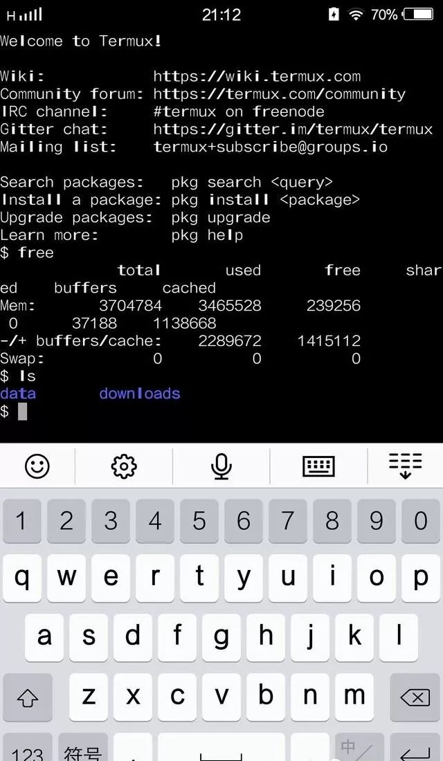 安装ssh后,可以直接在手机上远程登录Linux服务器,如下: