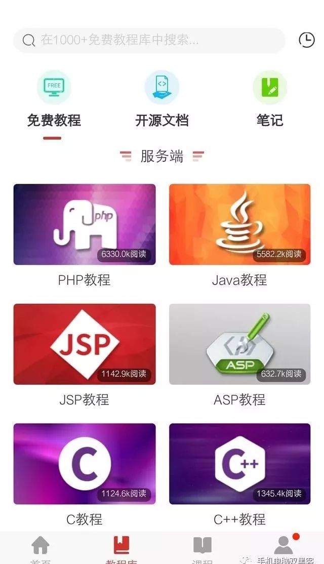 下载完成后,打卡这个软件,我们就可以直接搜索所有的免费资料,如下,有前端的,也有后端编程的,很基础的入门资料,非常不错: