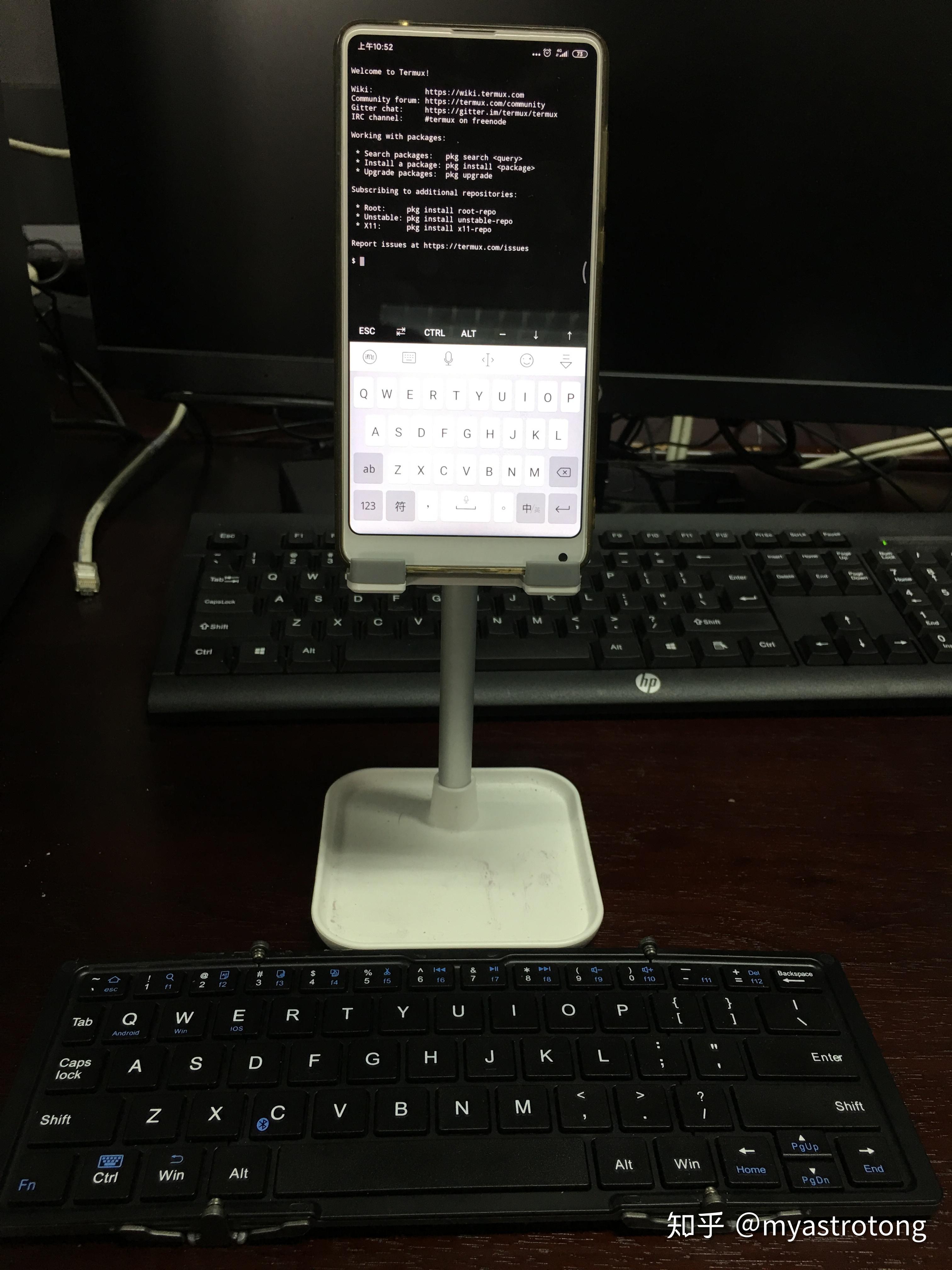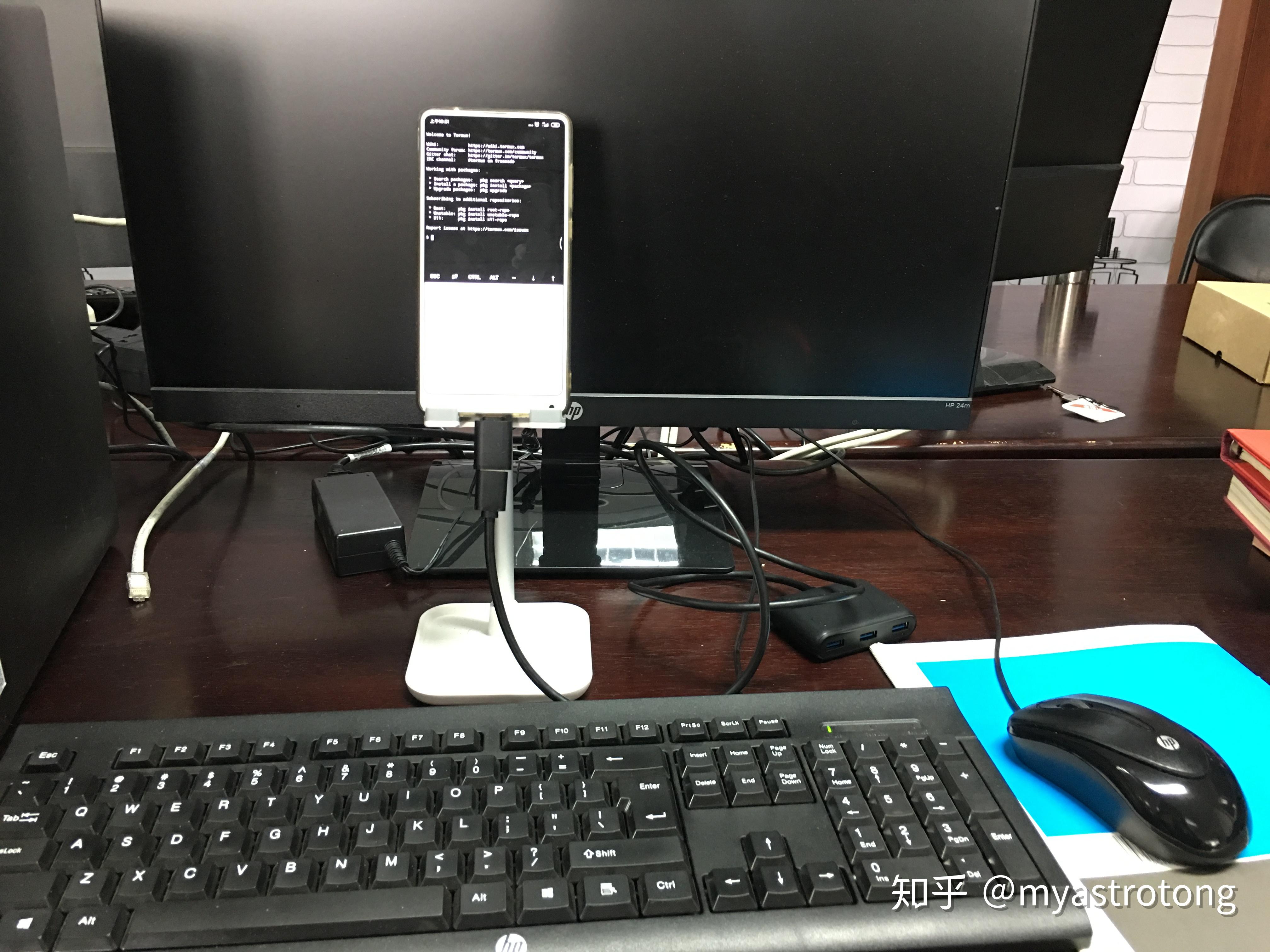 高配:安卓5.0及以上的手机,USB Hub,键盘,鼠标,手机支架,比如楼下这样(请无视我凌乱的背景)。Hub用来连接全键盘和鼠标,用起来就跟电脑操作一样了,还可以免除蓝牙键盘的不习惯,实际金钱成本好像比中配低(哈哈!):